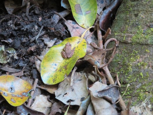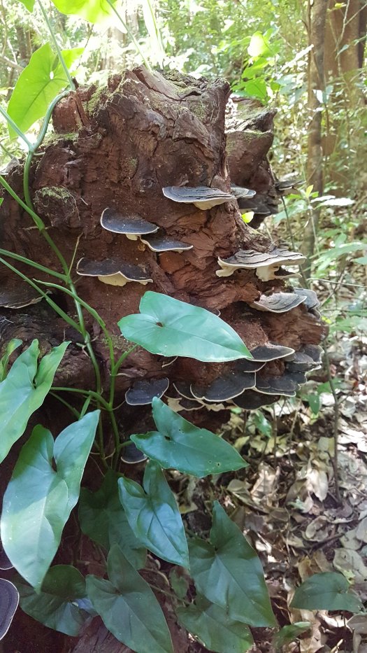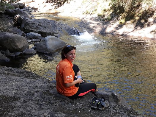 De route die wij lopen gaat langs 2 uitkijkpunten over het dal. Links zien we zelfs de zee nog liggen. Het is veel klimmen en klauteren tussen de bomen. Het eerste stuk voornamelijk dalen, want ons doel is om bij de rivier uit te komen waar we gaan lunchen en kunnen zwemmen.