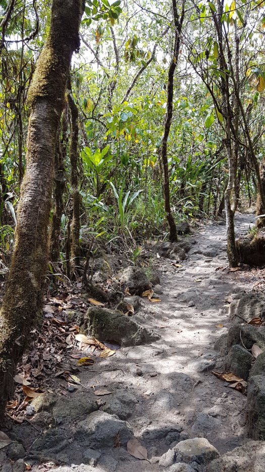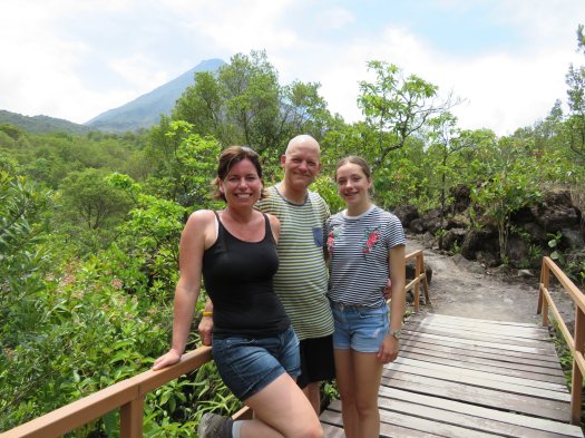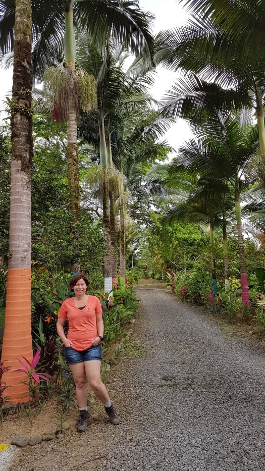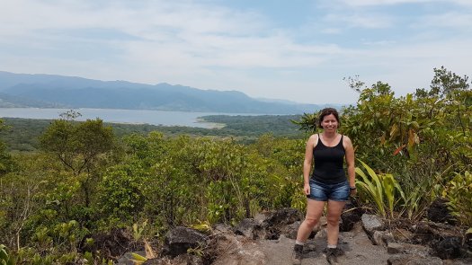 We beginnen de dag met een korte maar pittige wandeling in het Volcano El Arenal NP. Er zijn 2 routes, 3km en 6km. Wij gaan voor de langere route. En dat is een lekkere inspanning. Het is nu niet alleen stijl naar boven lopen. Maar stijgen en dalen over de rotsen. Eerst tussen de bomen maar daarna tussen de lavastenen met uitzicht op de El Arenal. Het is weer een heldere dag. Dus de top is goed te zien.