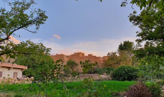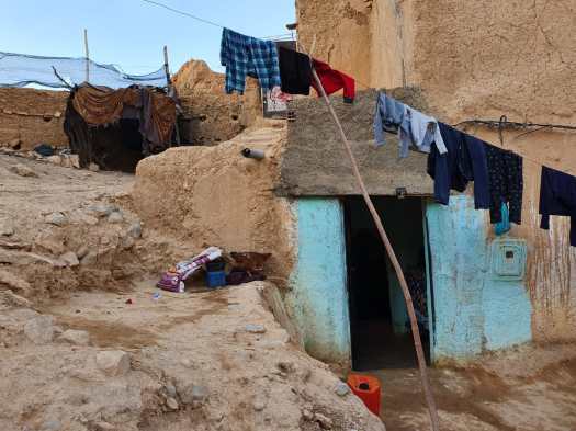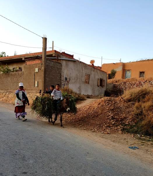 De bus brengt ons in de buurt van een Berber dorpje. Hier wandelen we een stukje langs velden met appelbomen. Deze streek staat bekend om de appelproductie. Totdat we aankomen bij een paar lemen huisjes. Alles ziet er keurig netjes uit. Ezeltjes buiten, waslijntjes met schone was en kleine kinderen. Helaas zijn die wel gewend aan toeristen die geld geven. Ze lopen de hele tijd naast ons mee en vragen om dirhams.