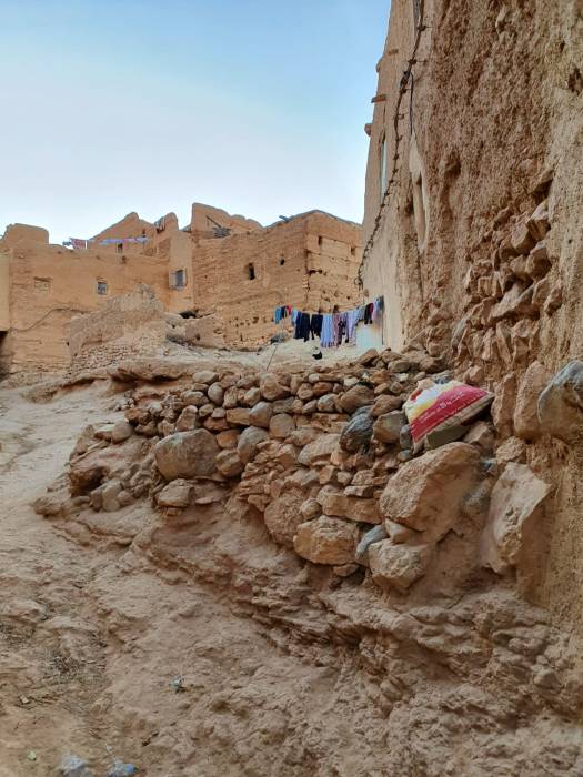 Bij een gezin thuis krijgen we uitleg van hoe de Marokkaanse thee wordt gezet. Het is een echt theeritueel. Waarbij er gelukkig alleen uitleg wordt gegeven over het suikergebruik (heel veel) en de suiker zelf achterwege wordt gelaten. Met de gloed van de ondergaande zon over het dorpje wandelen we weer richting de bus.