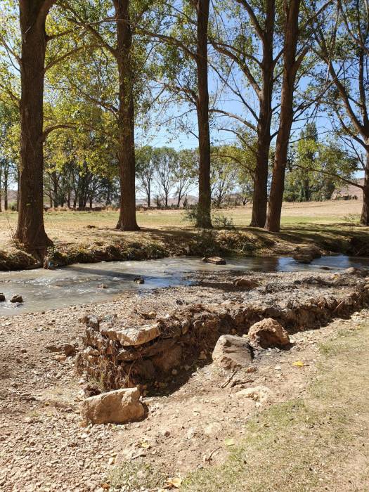 Daarna rijden we weer verder. Op een mooi plekje langs de rivier Oued Gigou eten we onze meegebrachte lunch op. Henk lekkere chocoladebroodjes en ik glutenvrij brood van Schar. Het moet niet gekker worden! Glutenvrij in Marokko.