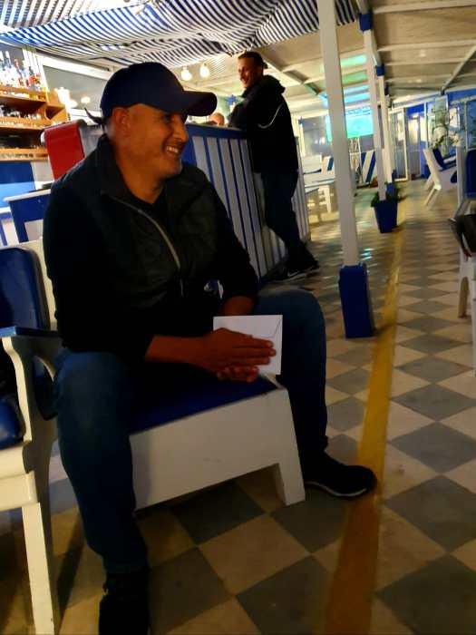 We laten alle luchtjes en de drukte van de haven achter ons en lopen naar het strand. Het is heerlijk weer. Zonnetje en een briesje. Niet te koud, gewoon een heerlijk wandelweertje. Er zijn verschillende restaurants langs het strand te vinden. Met verschillende prijsklasses. Ik had iets uitgezocht, sjiek tentje, leuk op het strand dacht ik. Dat mag niet, is alleen voor de hotelgasten, of tegen 15 euro p.p. Dan maar op het normale terras. Mag ook niet. Is alleen voor de lunch. Uiteindelijk op de laatste bank belandt. En wat blijkt, een cappuccino voor 4 euro. Op vakantie let ik niet echt op. Maar heb eerder 2 cappuccino’s en 2 cola’s voor 5 euro gehad. Spullen maar weer gepakt en op zoek naar iets anders gegaan. Uiteindelijk op een prima plekje uitgekomen. En 3 euro voor 2 kopjes.