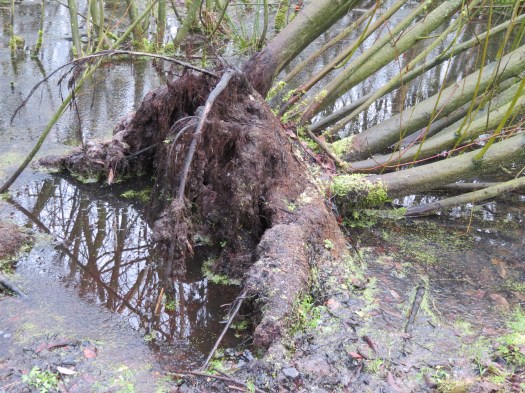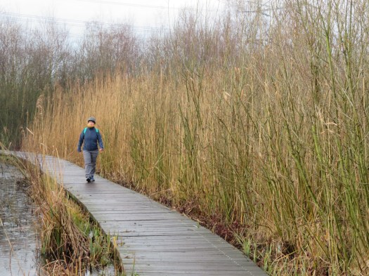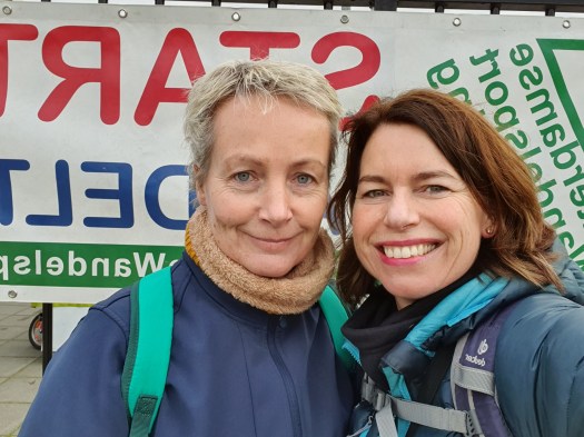 We stappen nog een stuk door de blubber tot we weer op het geasfalteerde wandelpad komen. De nieuwe schoenen van Anja zien er heerlijk niet zo nieuw meer uit.