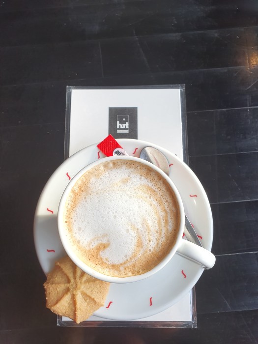 Na 5 km komen we in Park Hitland. Hier is de eerste rustpost bij Hit Eten & Drinken te vinden. Normaal ga ik in één keer door. Maar even een bakkie onderweg is toch wel lekker.