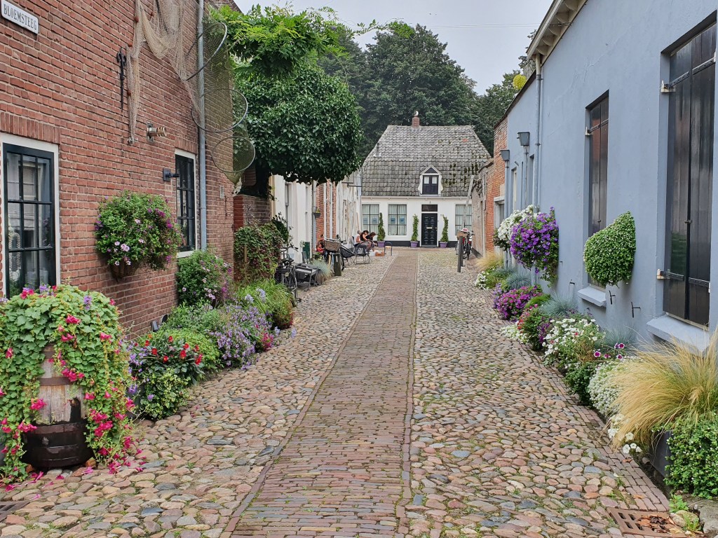 Na een klein stukje lopen wandel je zo via de middeleeuwse stadspoort het stadje in. Niet alleen fysiek, maar nog meer gevoelsmatig, de poort geeft toegang tot de verleden tijd. Oude panden, klinkertjes, witte klinkerstoepjes en straatjes vol met vrolijk gekleurde bloembakken. Wat is dit mooi. Ik voel een glimlach van geluk op mijn gezicht komen en loop de rest van de dag te genieten.