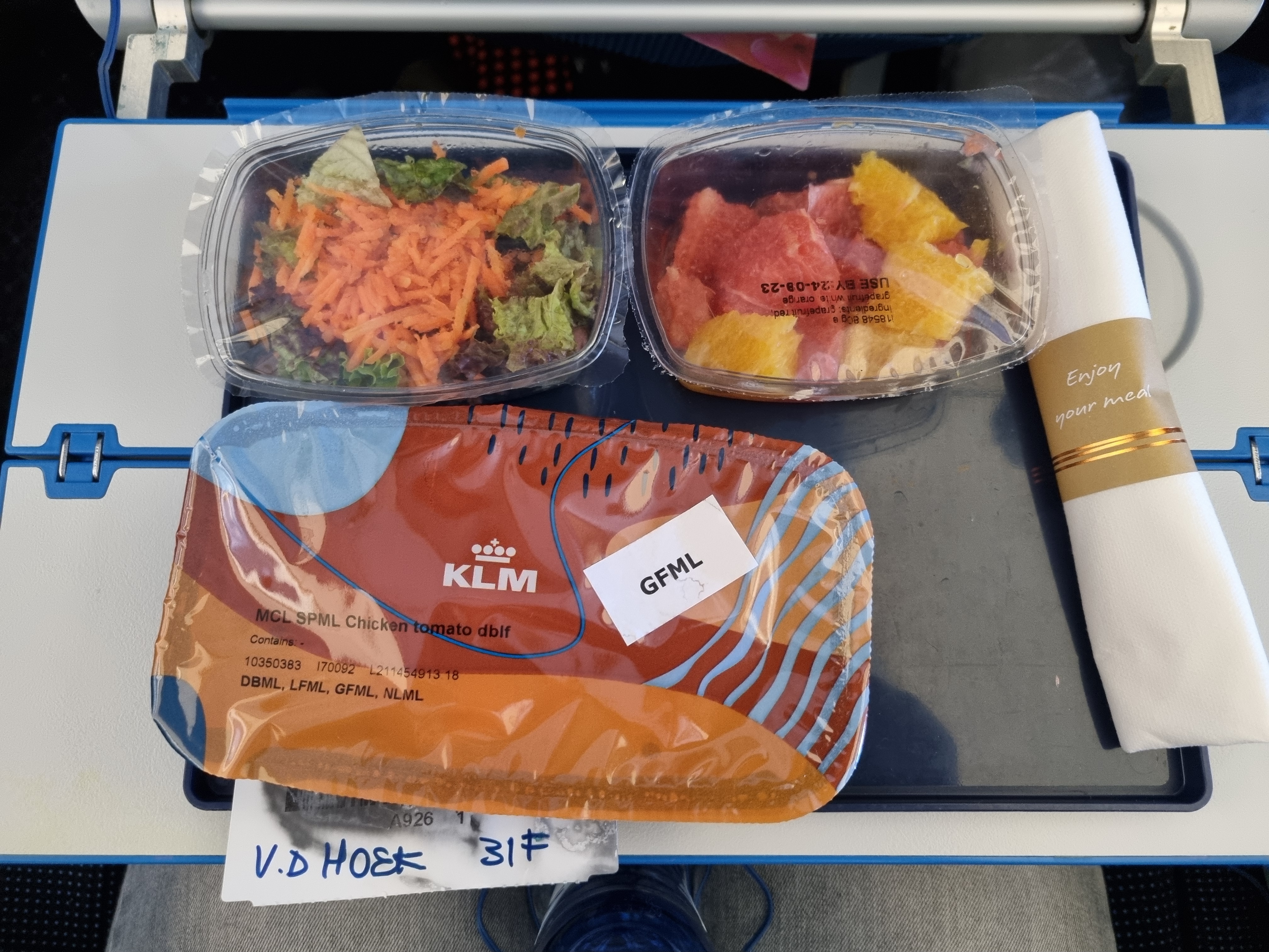 De vlucht is prima verlopen. Lekker gegeten, qelezen en een filmpje gekeken.