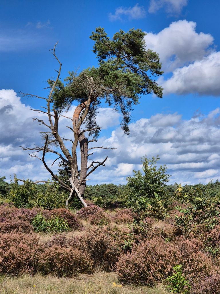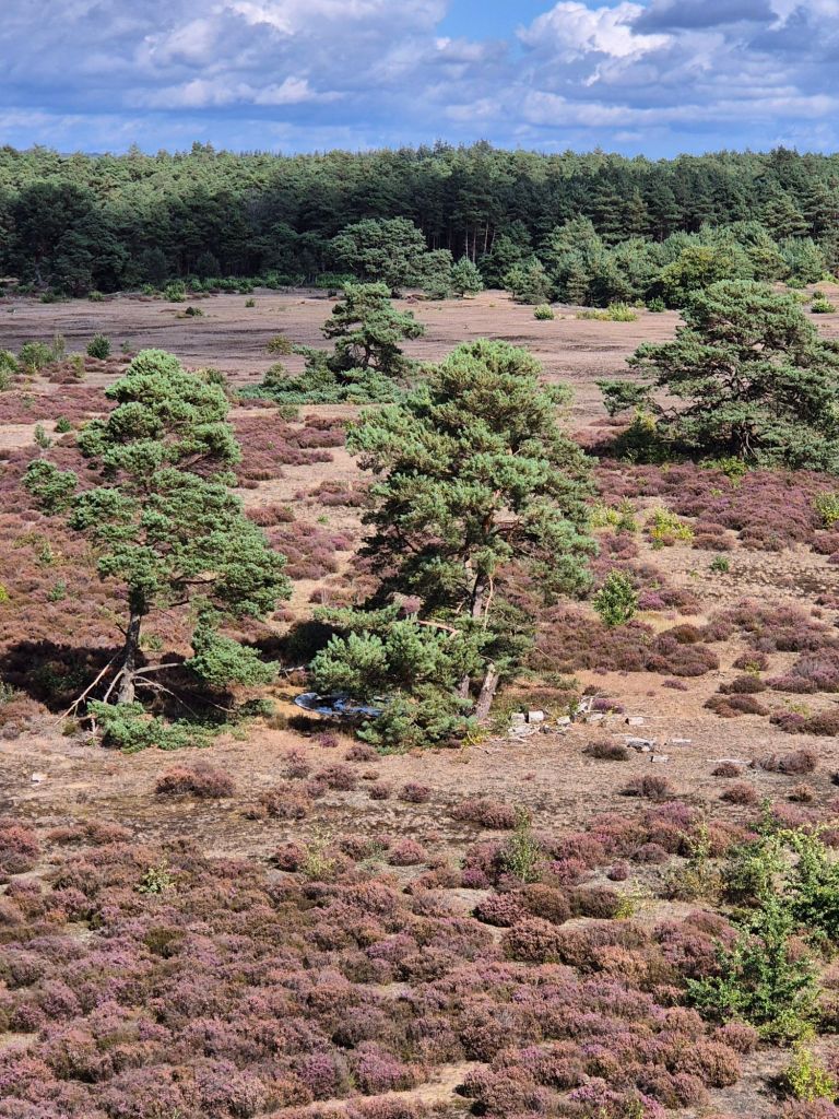 We vertrokken vroeg, want het was ruim anderhalf uur rijden. Gelukkig begon de excursie pas om 11 uur, dus we hoefden niet bij dag en dauw op pad. Eenmaal aangekomen waren we mooi op tijd en dachten meteen: wat zal het hier prachtig zijn als de heide volop in bloei staat. Nu was er nog wat bloeiende heide te zien, maar een groot deel was al uitgebloeid. Voor volgend jaar staat een bezoek aan dit deel van de Veluwe dus opnieuw op de planning.
